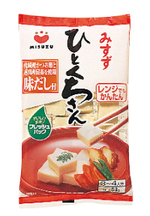 同年、当社は創業70周年を迎えるに際して、今後10年のテーマは「大豆関連食品新規事業への進出」とした。そこで、企業指針に則り新商品の研究開発を着々と推進させていったが、そのポイントを占めるのは、「凍り豆腐と共通の原料が使用でき、なおかつ、凍豆腐製造技術の関連で行え、当社の遊休施設と販路を活用できるもの」ということであった。こうして考えられたのが「油あげ」である。そして、油あげが大量生産できる商品であったことも決定理由のひとつであった。昭和49年8月には、油あげ設備の一期工事を完了し、一気に量産体制に入った。一方、凍り豆腐ではアンモニア膨軟加工法に替わる新膨軟加工法が開発され、昭和50年、「ハイみすゞ豆腐」を全国に発売。利便性とおいしさが好評で市場拡大の大きなきっかけとなった。