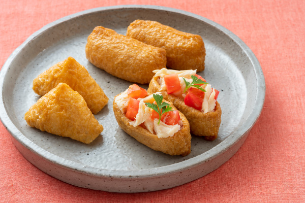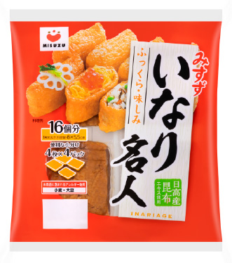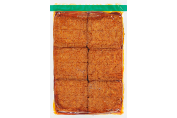 当社では、ご飯を詰めるだけで「おいしいいなり寿司」を作ることができる「味付けいなりあげ」とうどんにのせるだけで簡単に「きつねうどん」を楽しめる「味付けうどんあげ」をご用意しています。「味付けいなりあげ」、「味付けうどんあげ」の原料となる油あげは自社工場で生産し、味付けは当社独自の製法により油あげの一枚一枚にじっくりと味を染み込ませています。また、ご飯を詰める際にもきわめて口の開きが良く作られています。商品のラインナップは家庭用と業務用に分かれ、その用途に応じてレトルト加工(常温保存)とチルド加工(要冷蔵)の2種類の方式で調理殺菌を行なっています。