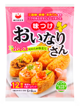 家庭用の「味付けいなりあげ」は、保存性に優れたレトルト加工(常温保存品)と味へのこだわりを重視したチルド加工(要冷蔵保存品)の両方式を採用しています。地域性に合わせて、サイズ、形状を取り揃え、内容量も必要に応じて各種ご用意しておりますので、季節ごとのイベントや催事、お子さまのおやつなどいつでもご飯を詰めるだけですぐに“おいしいいなり寿司”を作ることができます。