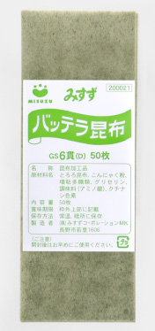シート食品は、主に「バッテラ寿司」の上にのせる「昆布シート」として使用されています。元々は天然の昆布を薄く削る事により製造されていましたが、昨今は職人の人手不足もあり、量的な確保もむずかしくなっております。その状況の中で、当社独自の技術により自然の素材と同等の商品を工場で安定して製造することができるようになりました。