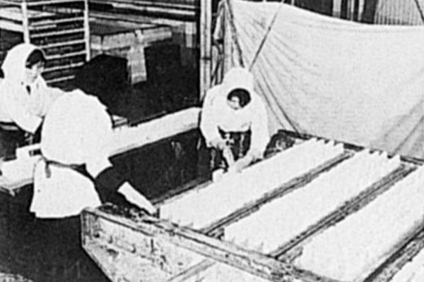 農家の冬の副業として始まった凍り豆腐作り。そして、第二次創業期に画期的な「アンモニア膨軟加工法」の発明、その後の需要の増加に応えるために人手から機械化への変遷、そして近代化に向けた生産方式の転換。当社の強みとも言える「生産設備の自社開発」への思いは創業時に醸成されて、現在まで引き継がれています。