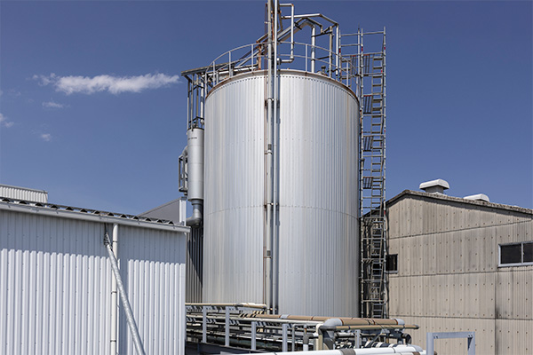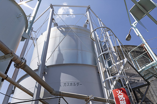 排水処理設備は固定床式の担体嫌気処理設備を導入しています。担体を使用した固定床式嫌気処理設備により、安定して当社の排水に適した処理が行えるようになりました。また、導入当時は震災により国内の電力が不足していた時期でもあったことから、当設備から生成されたメタンガスを燃料として発電を行うバイオマス発電機も設置しています。