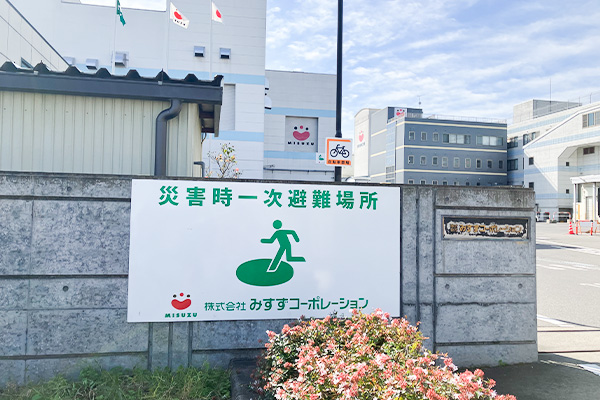 災害発生時には凍り豆腐の母屋冷蔵庫の冷凍機を稼働するための予備電源として、また、地域の住民自治協議会とも協定※を結び、近隣住民の皆様の生活を一時的に支援するための避難場所を提供して、100V電源の供給ができる体制を整えています。