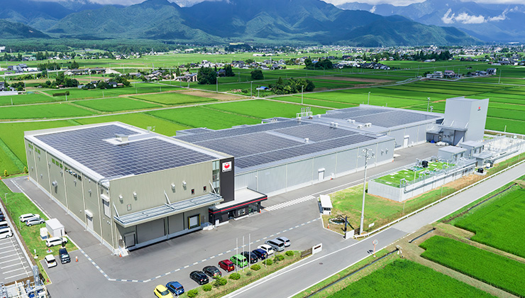 全国へ、世界へ、当社の商品をお届けするために稼働する工場。そこにはそれぞれの「モノづくり」技術の最先端が集約されています。 凍り豆腐の製造を培った大豆の加工技術を活かし、同じ大豆加工食品として確立したのが油あげ・味付け油あげ(いなりあげ・うどんあげ)の製造であり、原料となる丸大豆から製品となるまでの全ての工程を自社で行っています。これにより、いつでもお客様に満足していただける高品質の商品を作ることができるようになっています。
