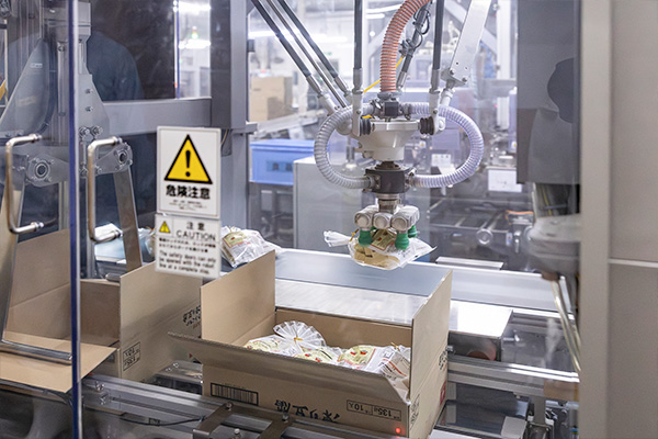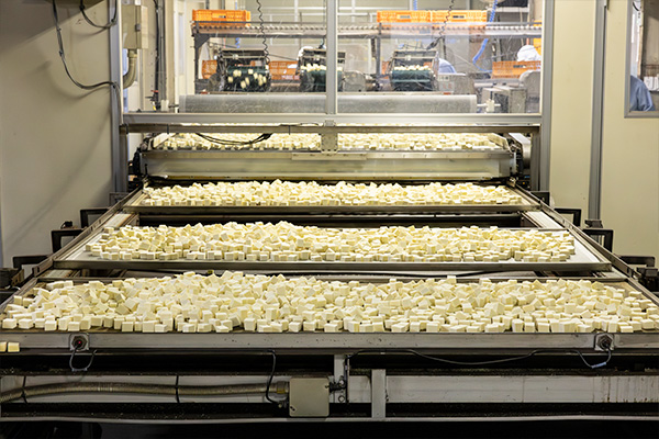 凍り豆腐の品質に関わる生豆腐の製造から凍結・熟成・乾燥等の重要な工程には長い歴史とその経験によって培われた技術を活かしながら、最新の技術を随所に取り入れた自社開発による設備を導入しています。その特徴は天然製法から学び取った方法が人工的に再現されているところにあり、技術面では生豆腐を凍結して冷蔵庫内で一定期間熟成させた後、解凍、脱水して乾燥するまでの一連の工程内に詰め込まれています。