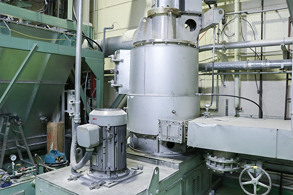 非食品用乾燥おからには直接加熱式の乾燥機を導入しています。この方式は熱風発生炉内に燃焼兼乾燥用の空気を送り込み、火炎によって加熱された空気を直接「生おから」に当てることによって乾燥を行ないます。このため、この方式は燃焼熱量がそのまま「生おから」の乾燥に使われるので、乾燥効率が良く装置も小型化する事ができます。
