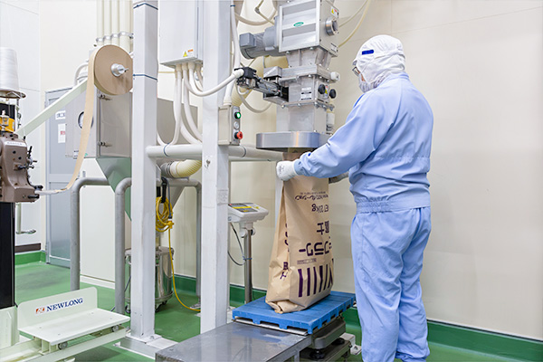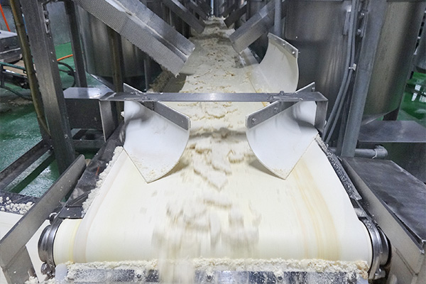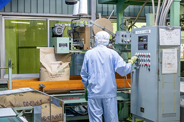 乾燥後のおからは、用途に応じて粉砕機を通す事で粒度の異なる「乾燥おから」もご用意しています。尚、食品用乾燥おからは「生おから」の状態から乾燥、包装、出荷までの全工程において一般生菌の増殖を抑制する管理方法を採用し、菌数も厳密に管理していますので、様々な食品用途において安心してご利用になれます。