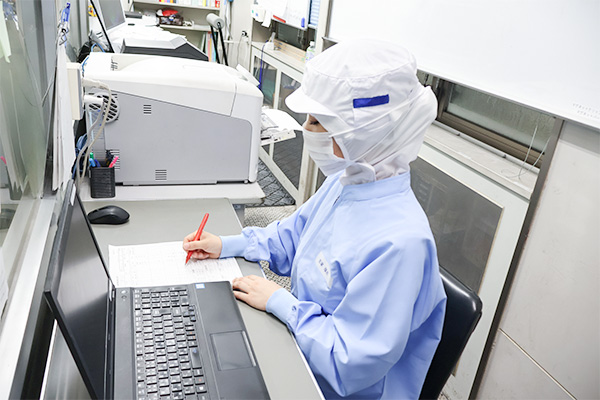 スーパーなどで販売されている家庭用と呼ばれる製品を作っています。油あげを機械にセットする「供給」、異物がないか機械や目視で確認する「検品」など、工場でのライン業務を主に行っています。その他にも、生産日報の確認や、パソコンへのデータ入力業務などの事務仕事もしています。