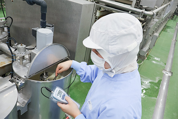 飲食店でアルバイトをしていたこともあり、食に携わりたいと思っていました。また、会社のホームページの閲覧や工場見学を通じて、商品がどのように作られているか興味を持ったからです。