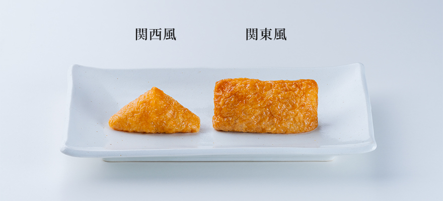 「味付けいなりあげ」は、地域によって味付けや形が異なり、関東ではしょうゆベースの濃いめの味付けで俵型、関西ではだしなどで旨味をきかせた薄めの味付けで三角形が一般的です。当社ではお客様の要望に応えたいという想いで品質や技術の向上に努め、現在では家庭用「味付けいなりあげ」の定番として、多くのお客様からご支持をいただいています。