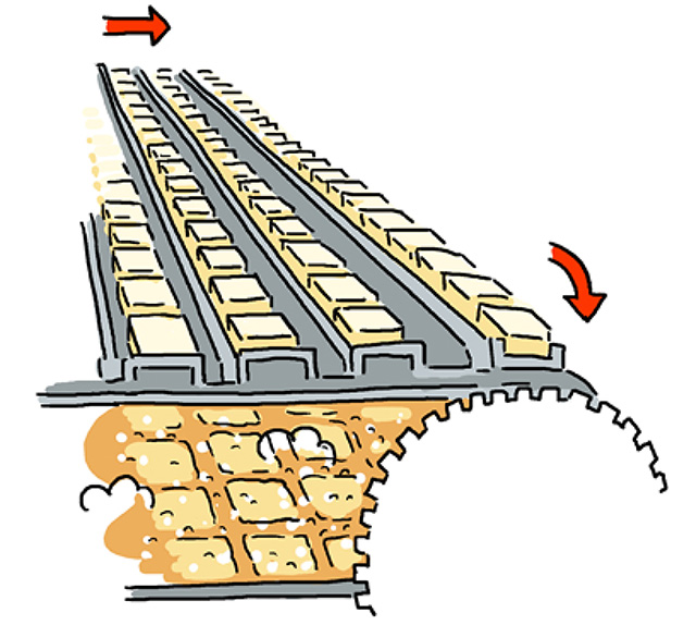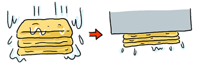 成形機のろ布の上に流して圧縮しながら脱水し、