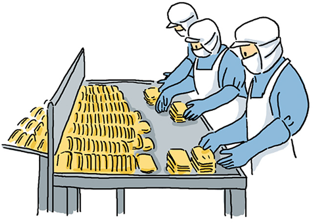 味付け油あげは、販売する地域やお客様の要望によって、大きさ、形、味付けを変えています。