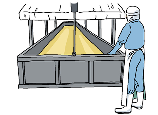 母屋と呼ばれる冷暗な場所(マイナス2〜3度)で、約20日間、熟成されます。