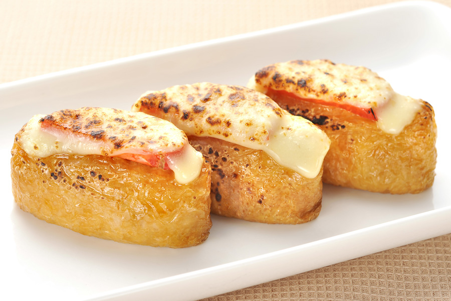 4. 味付いなりあげに③を詰め、①と②を形よく乗せたら出来上がりです。