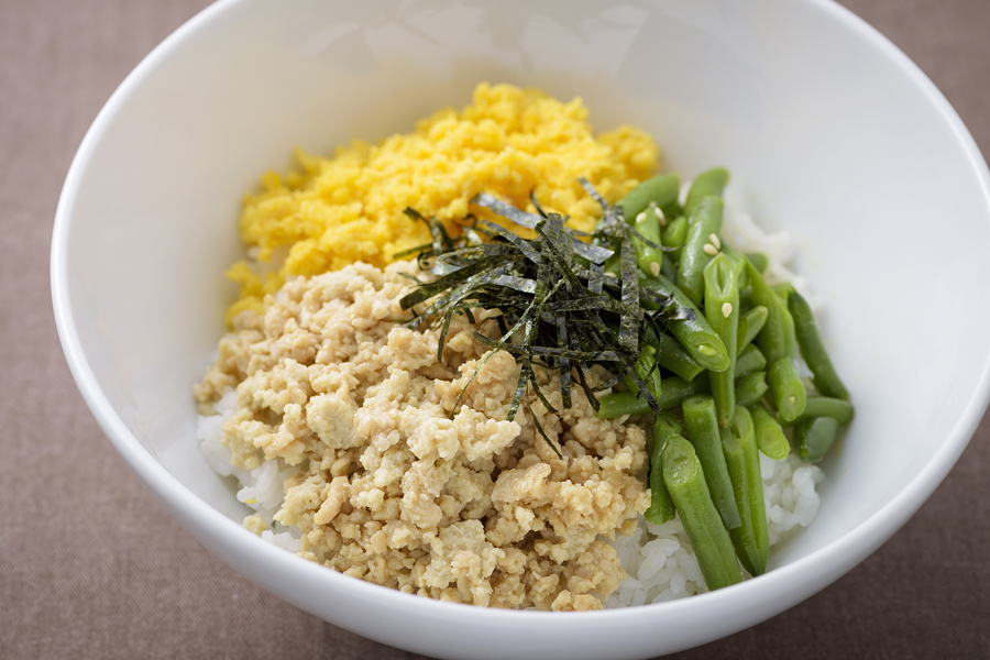 粉とうふの三色そぼろ丼