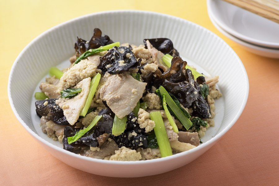 きくらげと豚肉ととうふの炒め物