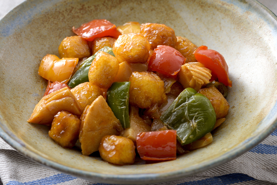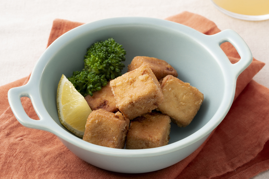 全形(レギュラーサイズ)・ひとくち・細ぎり・キューブなど用途に応じたいろいろなサイズの凍り豆腐や調味料が添付されている凍り豆腐を使った、手軽でおいしいレシピをご紹介します。