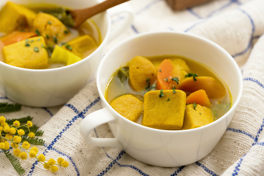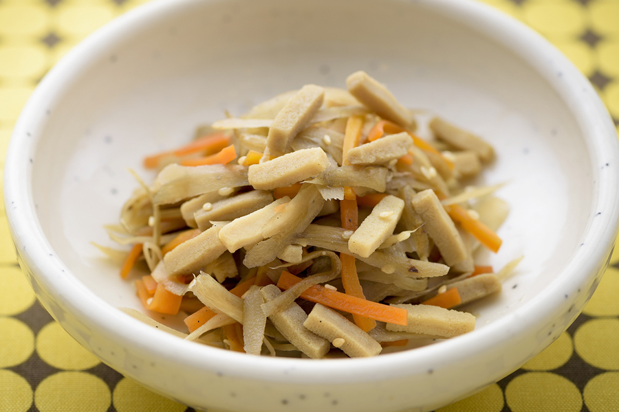 全形(レギュラーサイズ)・ひとくち・細ぎり・キューブなど用途に応じたいろいろなサイズの凍り豆腐や調味料が添付されている凍り豆腐を使った、手軽でおいしいレシピをご紹介します。