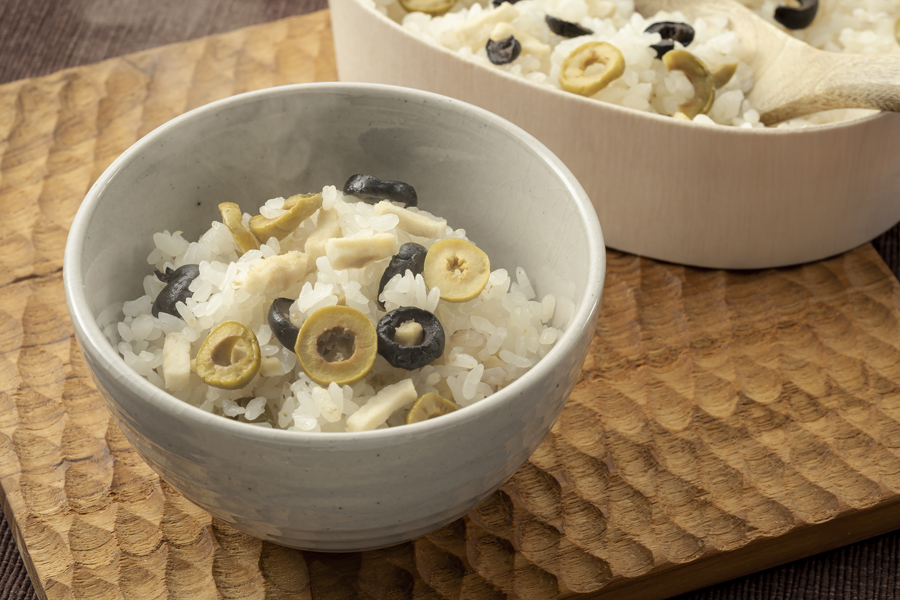 細ぎりこうや豆腐とオリーブの炊き込みご飯