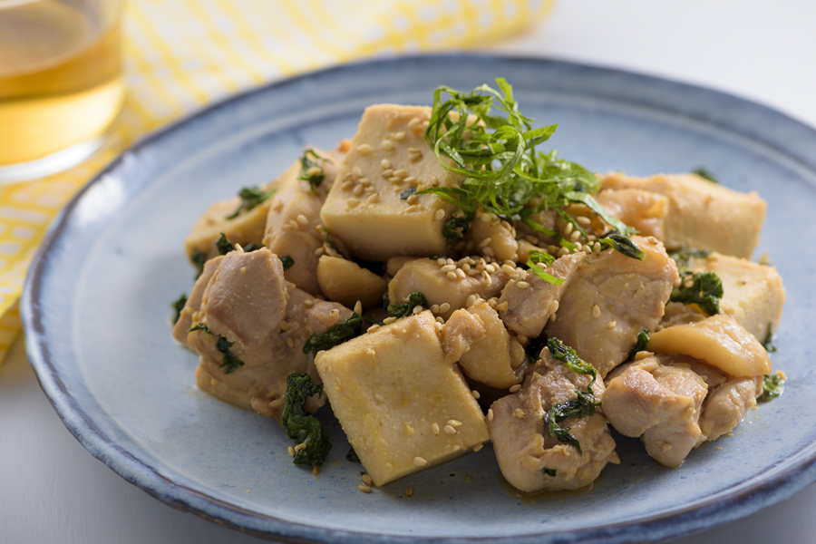 ひとくちこうやと鶏肉の大葉味噌炒め