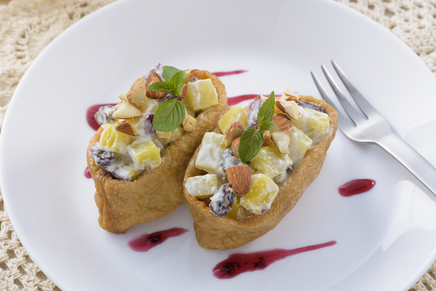 ごはんはもちろん、お餅やお蕎麦、素麺などを詰めるだけでおいしいひと品ができ上がる「味付いなりあげ」を使った、簡単で見た目も楽しめるレシピをご紹介します。
